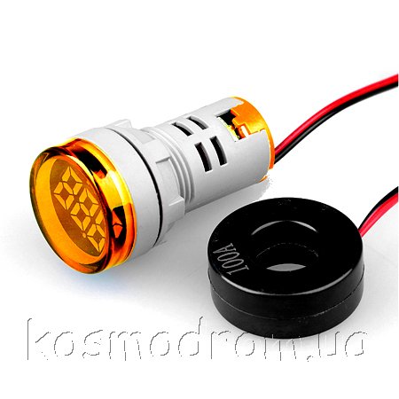 | AD101-22AM-Yellow Амперметр Цифровой панельный амперметр. Круглой формы. Трехсивольный. Диапазон измерения 0...100А. Точность: +/-1А. Трансформатор тока в комплекте. Цвет свечения: Желтый
