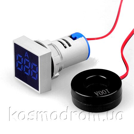 | AD101-22AMS-Blue Амперметр Цифровой панельный амперметр. Квадратной формы. Трехсивольный. Диапазон измерения 0...100А. Точность: +/-1А. Трансформатор тока в комплекте. Цвет свечения: Синий