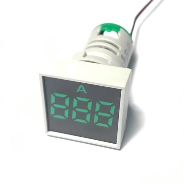 | AD101-22AMS-Green Амперметр Цифровой панельный амперметр. Квадратной формы. Трехсивольный. Диапазон измерения 0...100А. Точность: +/-1А. Трансформатор тока в комплекте. Цвет свечения: Зеленый
