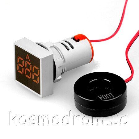 | AD101-22AMS-White Амперметр Цифровой панельный амперметр. Квадратной формы. Трехсивольный. Диапазон измерения 0...100А. Точность: +/-1А. Трансформатор тока в комплекте. Цвет свечения: Белый