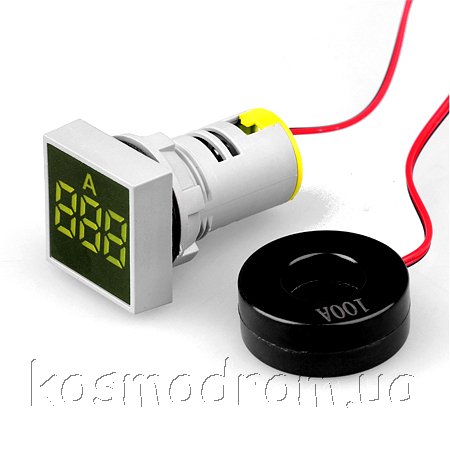 | AD101-22AMS-Yellow Амперметр Цифровой панельный амперметр. Квадратной формы. Трехсивольный. Диапазон измерения 0...100А. Точность: +/-1А. Трансформатор тока в комплекте. Цвет свечения: Желтый