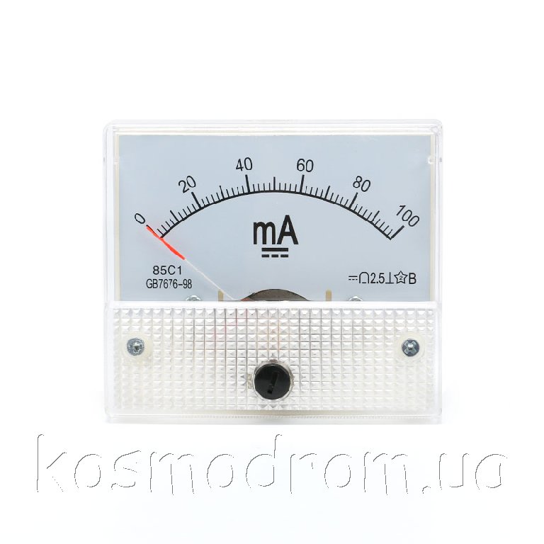 | AM-100mA Амперметр 85C1. Амперметр аналоговый, диапазон измерения: 0...100 мA постоянного тока. Размеры: 63х54х58 мм.