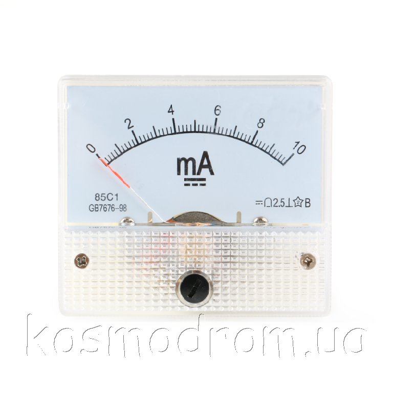 | AM-10mA Амперметр 85C1. Амперметр аналоговый, диапазон измерения: 0...10 мA постоянного тока. Размеры: 63х54х58 мм.