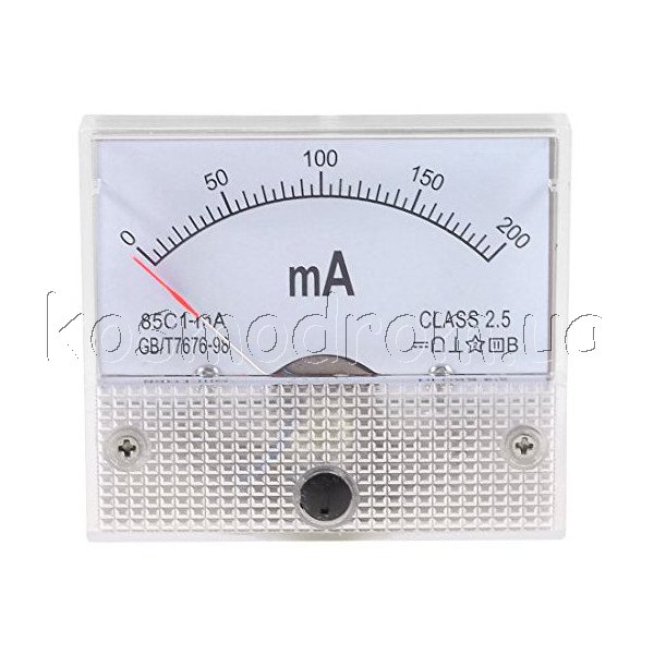 | AM-200mA Амперметр Амперметр аналоговый, диапазон измерения: 0...200 мA постоянного тока. Размеры: 65х55х46 мм.