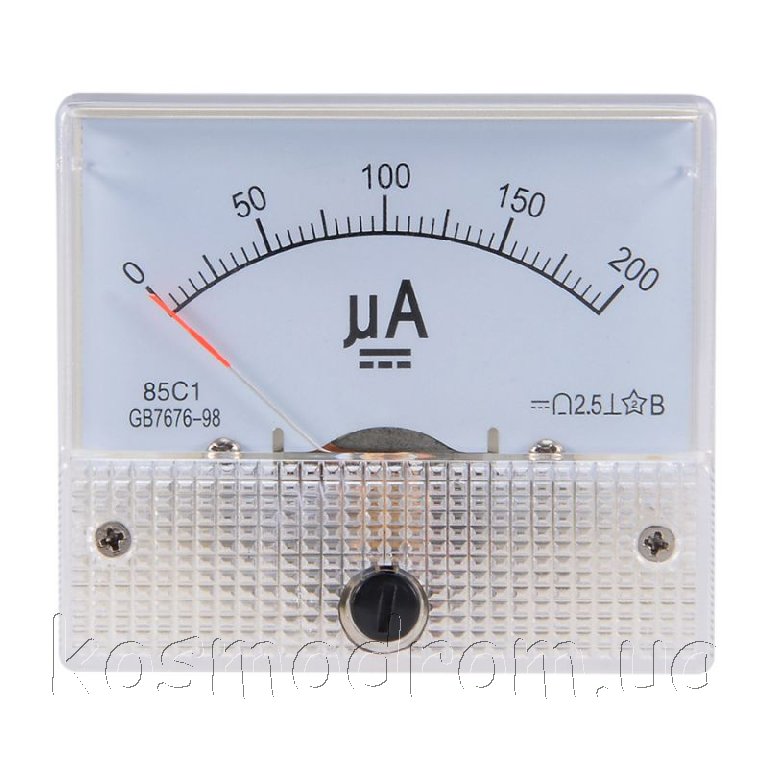| AM-200microA Амперметр 85C1. Амперметр аналоговый, диапазон измерения: 0...200 мкA постоянного тока. Размеры: 63х54х58 мм.