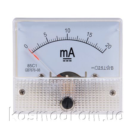 | AM-20mA Амперметр 85C1. Амперметр аналоговый, диапазон измерения: 0...20 мA постоянного тока. Размеры: 63х54х58 мм.