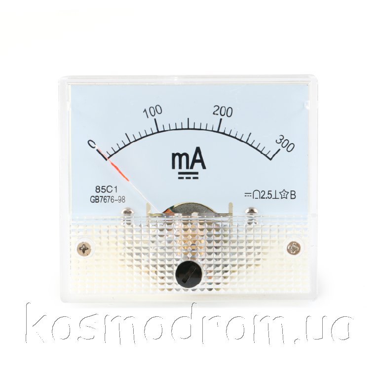 | AM-300mA Амперметр 85C1. Амперметр аналоговый, диапазон измерения: 0...300 мA постоянного тока. Размеры: 63х54х58 мм.
