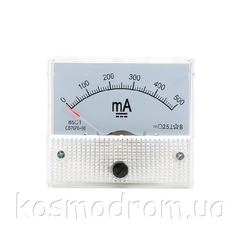 | AM-500mA Амперметр 85C1. Амперметр аналоговый, диапазон измерения: 0...500 мA постоянного тока. Размеры: 63х54х58 мм.