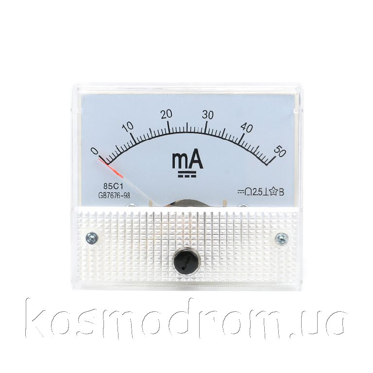 | AM-50mA Амперметр 85C1. Амперметр аналоговый, диапазон измерения: 0...50 мA постоянного тока. Размеры: 63х54х58 мм.