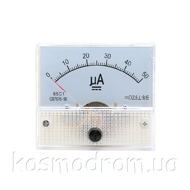 | AM-50microA Амперметр 85C1. Амперметр аналоговый, диапазон измерения: 0...50 мкA постоянного тока. Размеры: 63х54х58 мм.