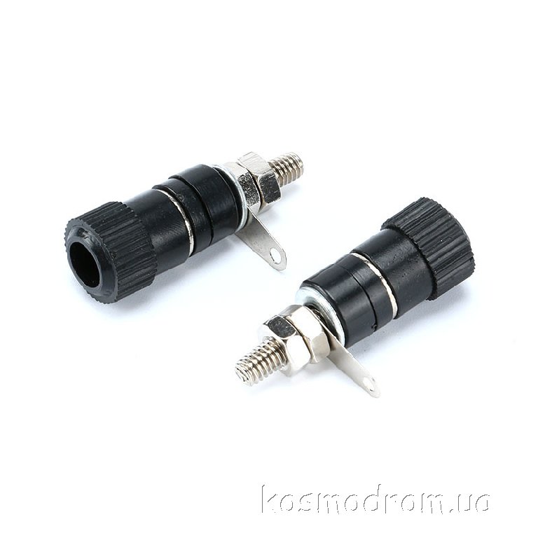 | Роз'єм Банан M4 Чорний Разъем типа банан Разъем акустический (банан), гнездо, черный, резьба М4. С лепестком для пайки