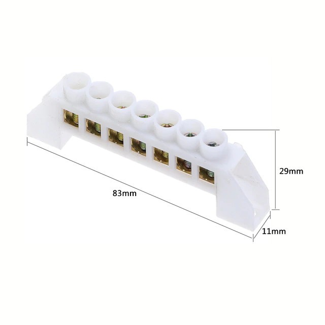 | Bridge-T-07P-White Клеммник барьерный Длина 83 мм Высота 29 мм Ширина 11 мм. Цвет белый, 7 pin