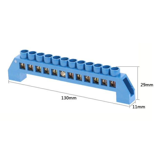 | Bridge-T-12P-Blue Клеммник барьерный Длина 130 мм Высота 29 мм Ширина 11 мм. Цвет Голубой, 12 pin