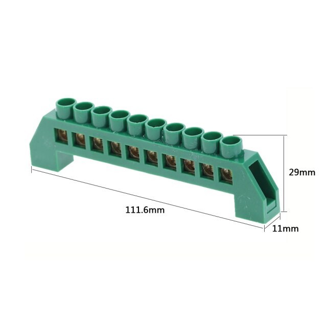 | Bridge-T-10P-Green Клеммник барьерный Длина 111,6 мм Высота 29 мм Ширина 11 мм. Цвет зеленый, 10 pin