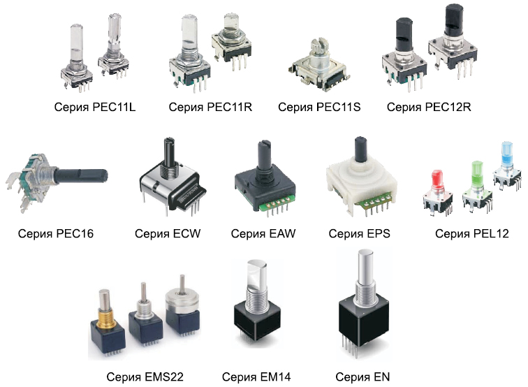 Bourns являются PEC11, PEC12, PEC16, PEL12, ECW, EAW, EPS, EMS22,
