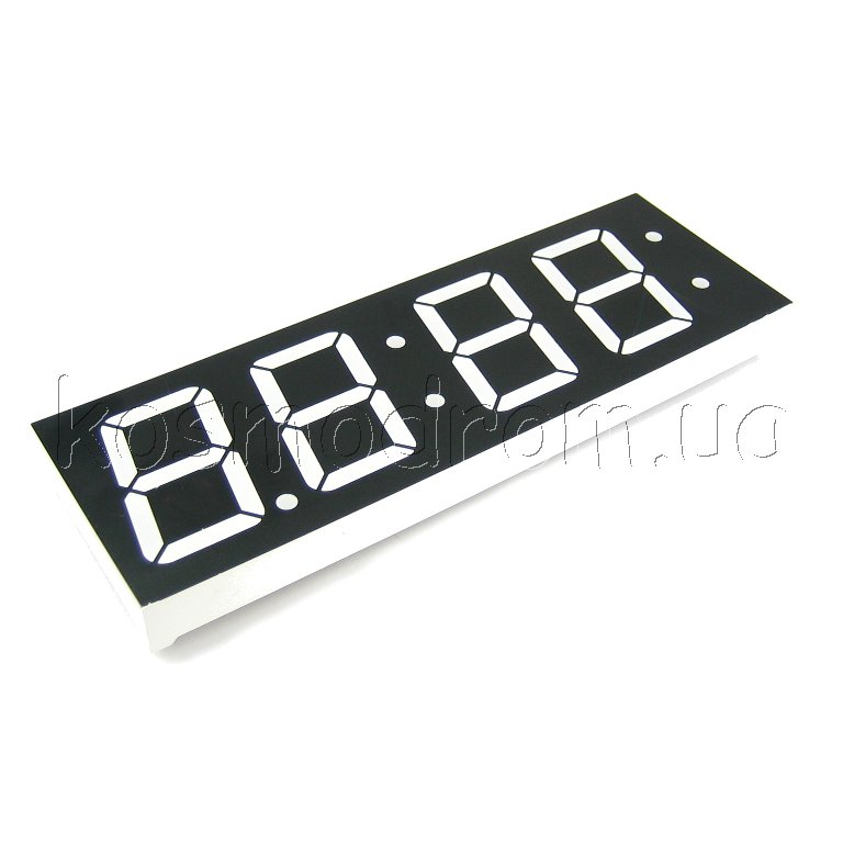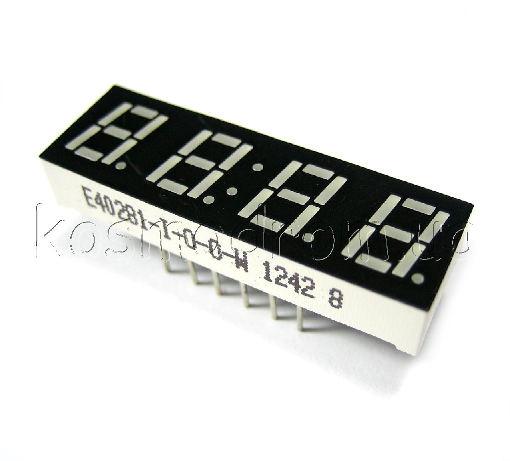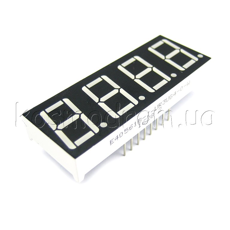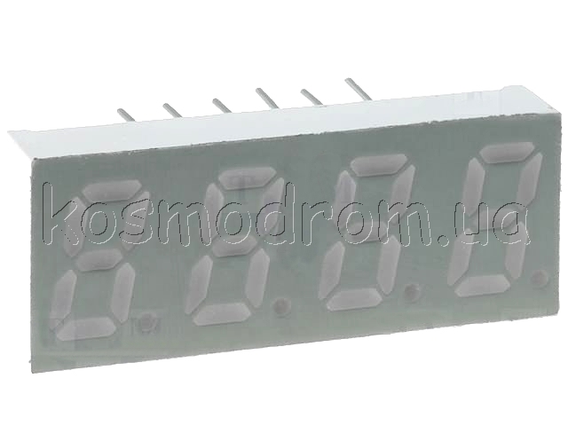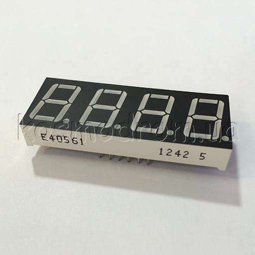 E40561-I-K-0-W Светодиодный индикатор четырехсимвольный Светодиодный индикатор, общий АНОД, высота символа 14,22 мм (0,56 дюйма), четырехсимвольный, цвет свечения зеленый. фон черный. Динамическая индикация