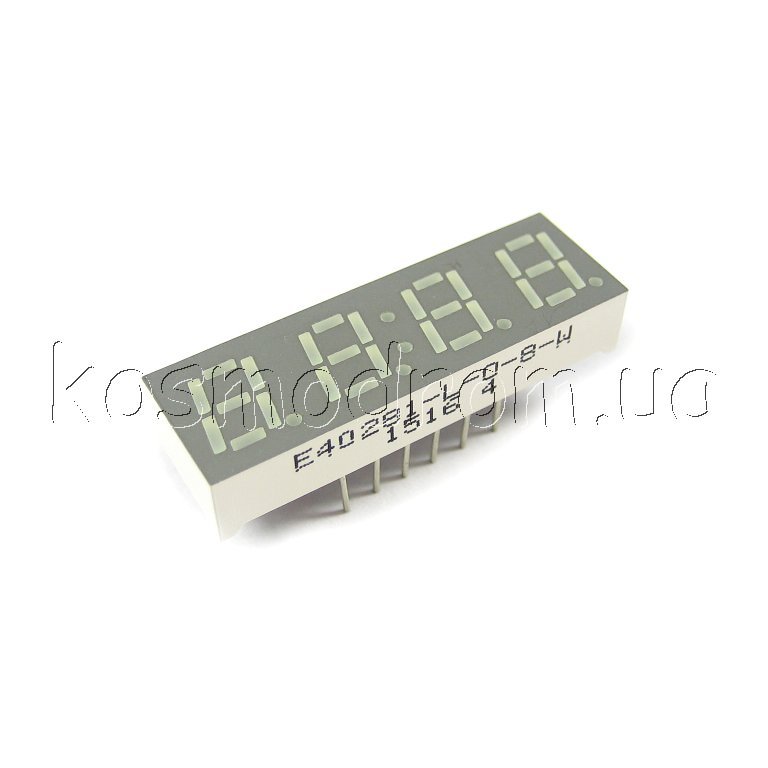 E40561-J-UR3-8-W Светодиодный индикатор четырехсимвольный Светодиодный индикатор, общий КАТОД, высота символа 14,22 мм, четырехсимвольный, цвет свечения красный яркий, фон серый. Статическая индикация