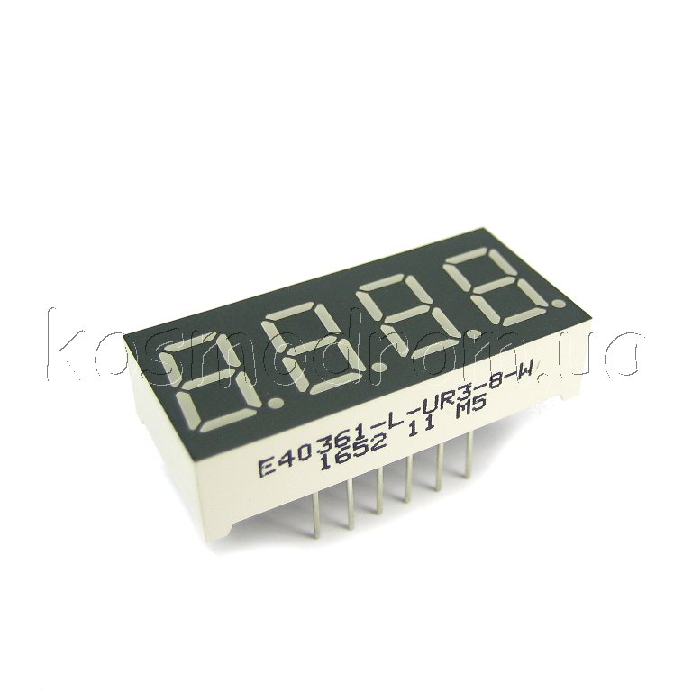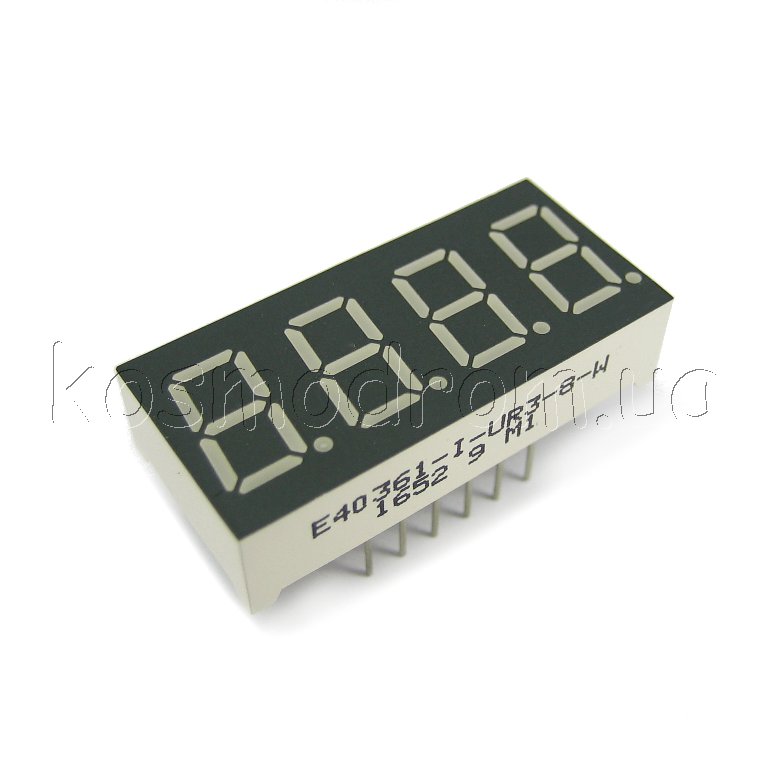 E40561-I-UR3-8-W Светодиодный индикатор четырехсимвольный Светодиодный индикатор, общий анод, высота символа 14,22 мм, четырехсимвольный, цвет свечения красный яркий, серый фон. Динамическая индикация