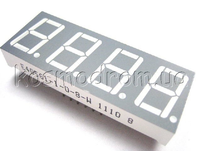 E40281-L-BL-8-W Светодиодный индикатор четырехсимвольный Светодиодный индикатор, общий КАТОД, высота символа 7,11 мм, четырехсимвольный, цвет свечения синий. фон серый. Динамическая индикация