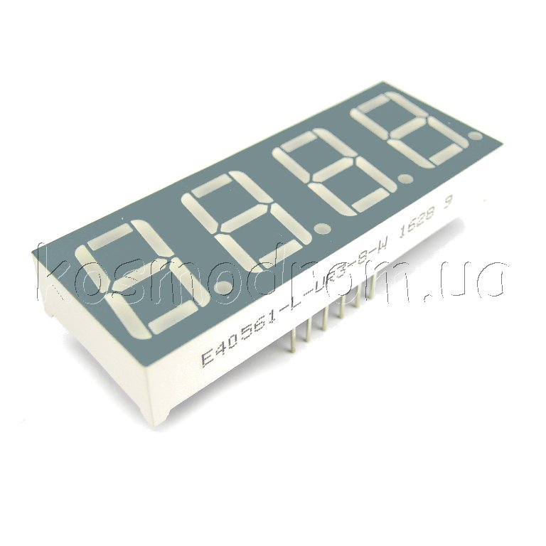 E40561-L-K-0-W Светодиодный индикатор четырехсимвольный Светодиодный индикатор, общий КАТОД, высота символа 14,22 мм (0,56 дюйма), четырехсимвольный, цвет свечения зеленый. фон черный. Динамическая индикация
