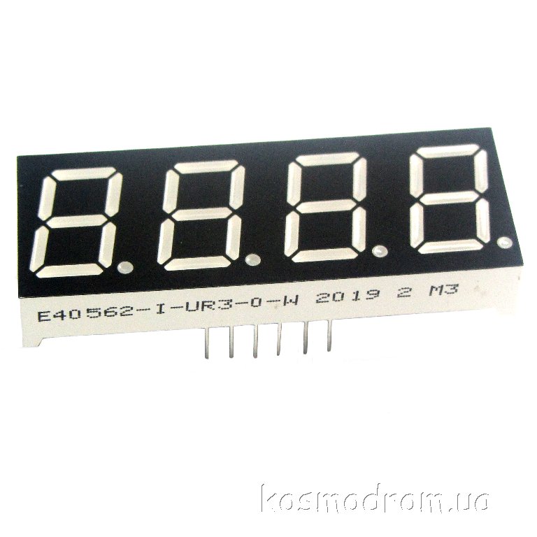 E40562-I-UR3-0-W Светодиодный индикатор четырехсимвольный Светодиодный индикатор, общий АНОД, высота символа 14,22 мм, четырехсимвольный, цвет свечения красный яркий. фон черный. Динамическая индикация