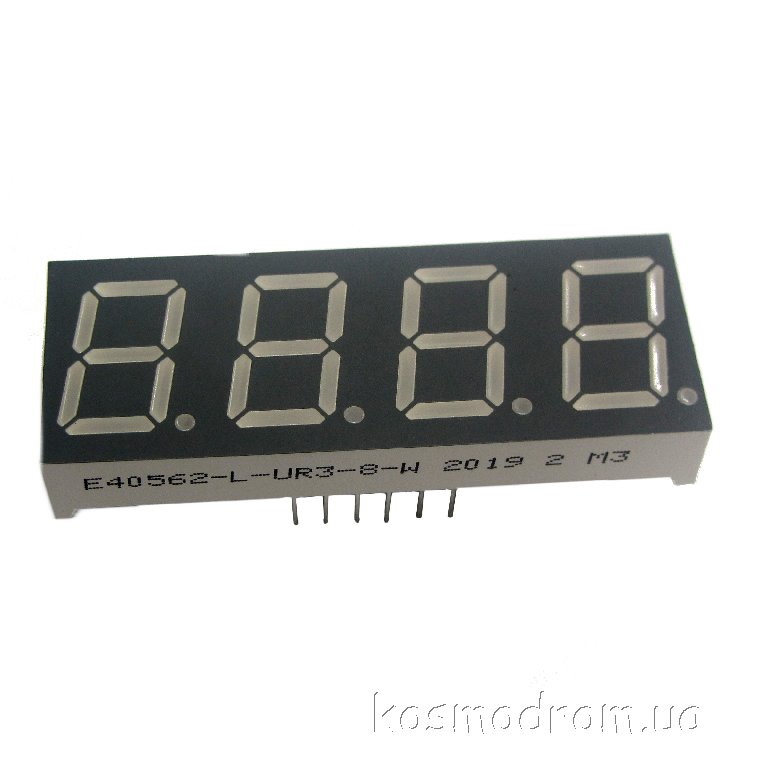 E40562-L-UR3-8-W Светодиодный индикатор четырехсимвольный Светодиодный индикатор, общий КАТОД, высота символа 14,22 мм, четырехсимвольный, цвет свечения красный яркий. фон серый. Динамическая индикация