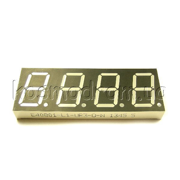 E40561-J-UY4-8-W Светодиодный индикатор четырехсимвольный Светодиодный индикатор, общий КАТОД, высота символа 14,22 мм, четырехсимвольный, цвет свечения желтый яркий. фон серый. Статическая индикация