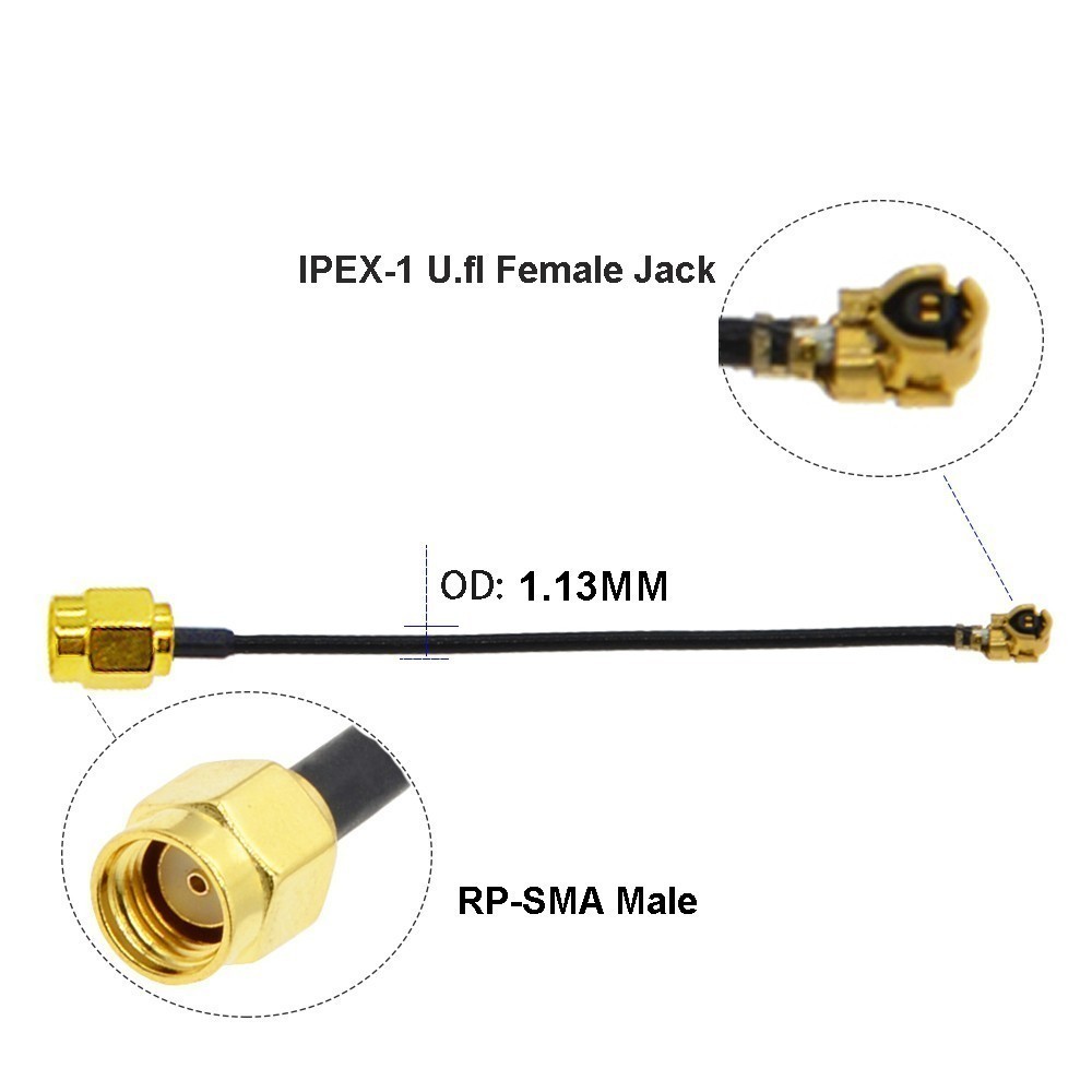 Радиочастотный переходник: IPEX - RP-SMA-K 100 см. Тип кабеля 1,13 мм.