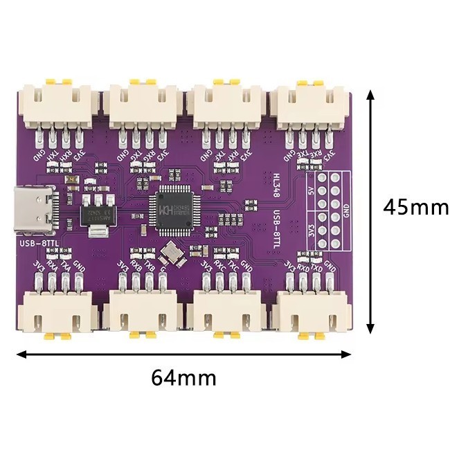 | CH348 USB-8TTL Преобразователь интерфейсов •Windows Linux mac0S•3-5 В•USB Type-C•JST