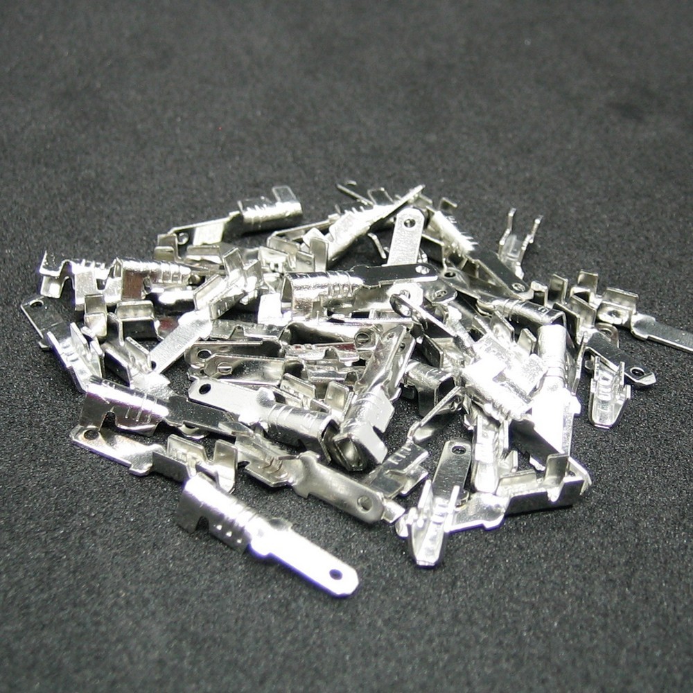 | 6.30mm Terminals Kit Наконечник ножевой Набор 50 лепестков мама + 50 лепестков папа + 100 изоляторов. Для кабеля 6.3 мм. +/- 5 шт