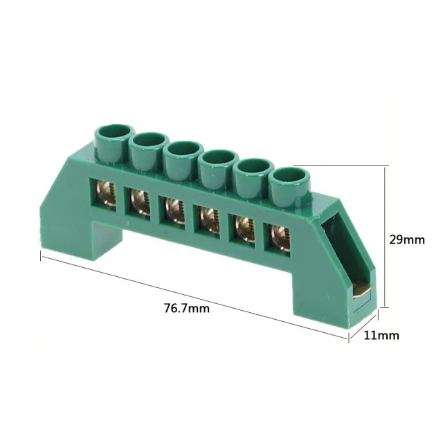| Bridge-T-06P-Green Клеммник барьерный Длина 76,7 мм Высота 29 мм Ширина 11 мм. Цвет зеленый, 6 pin