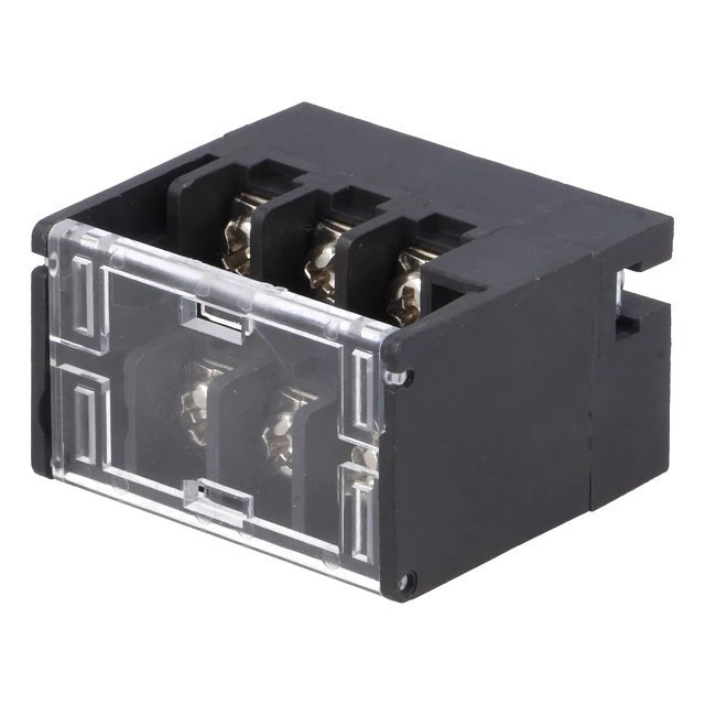 | DG58C-A-06P-13-00AH Клеммник барьерный Барьерный клеммник с крышкой, с фланцами, шаг 10 мм, контактов 6, луженые, 300 В. 20А. Черный