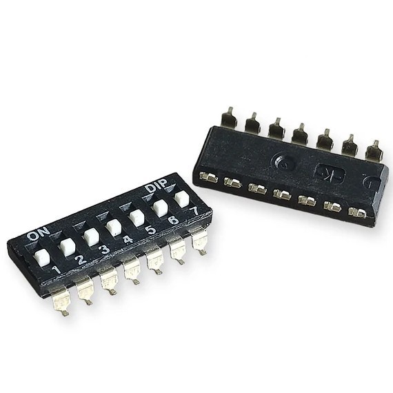 | HP-TC Switch 7P SMD DIP-переключатели Переключатель на 7 клавиш, SMD-монтаж. контакты: позолоченная медь. 25 мА, 24 В, UL94V-0