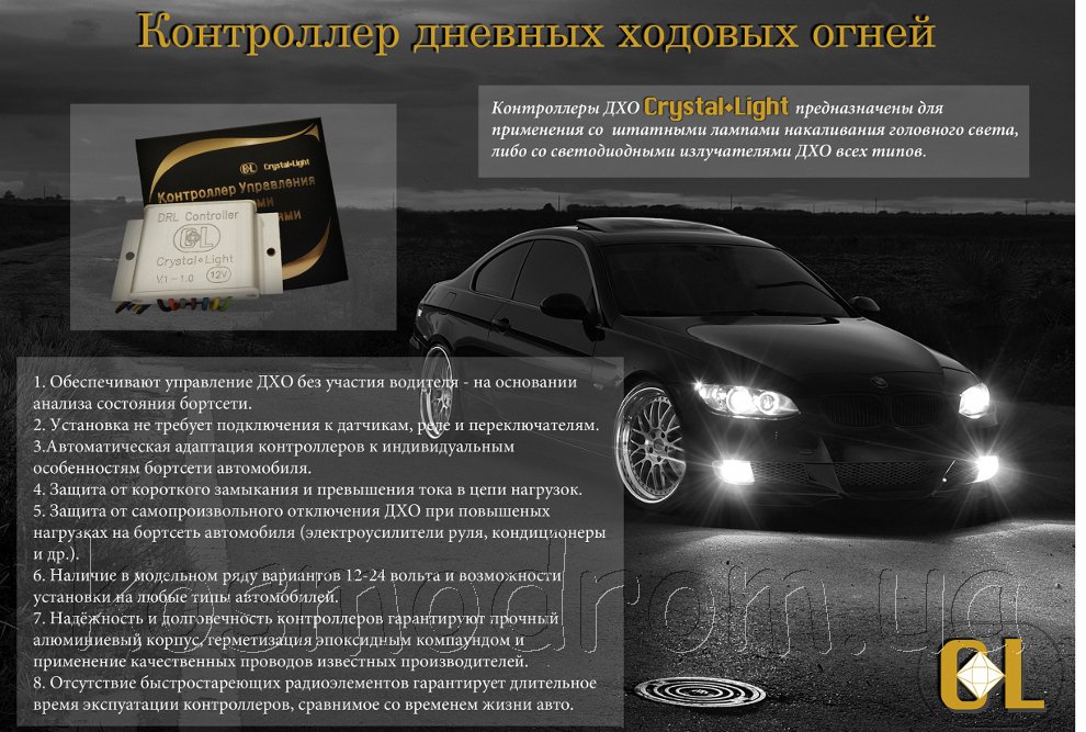 | Контроллер управления ДХО V4-1.0- 24В Контроллер управления ДХО / DRL Контроллер для штатных галогенных ламп 24 В. в качестве ДХО в режиме пониженного энергопотребления. Один силовой ключ. Для ТС с коммутацией плюсовой цепи питания ламп.