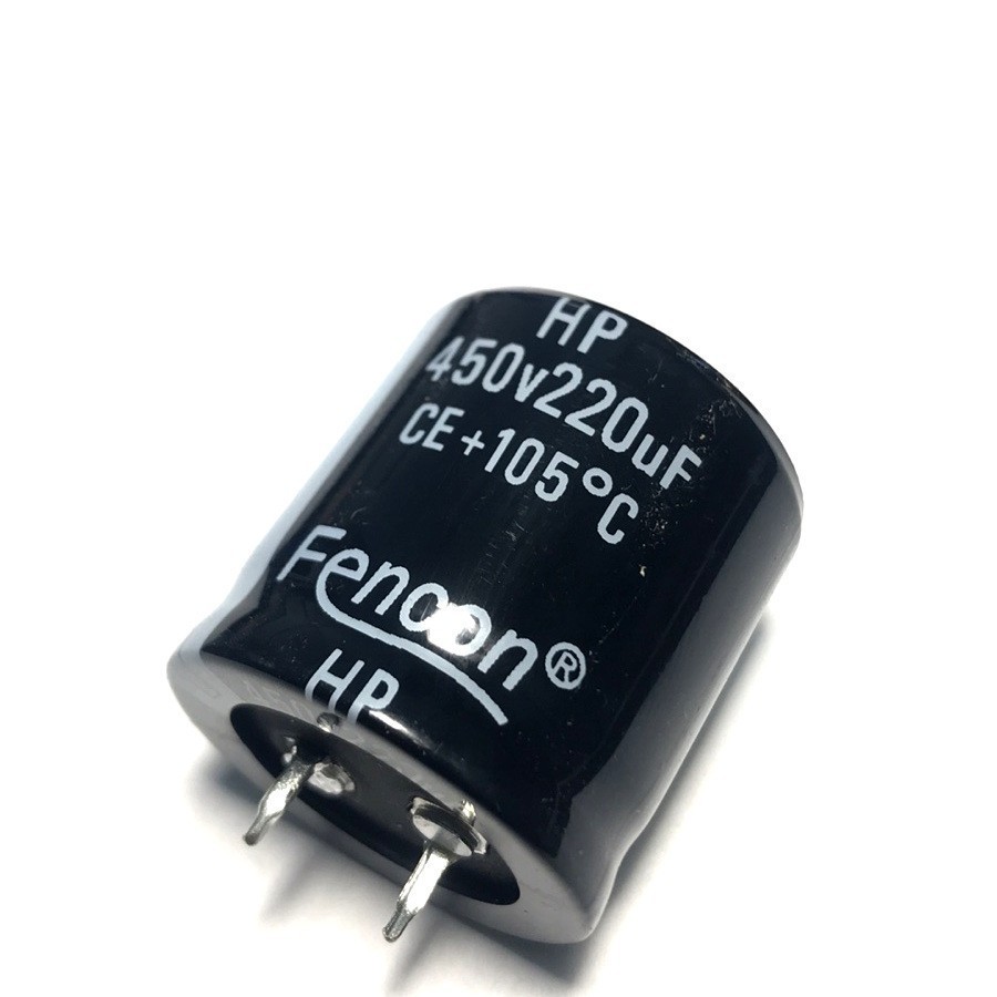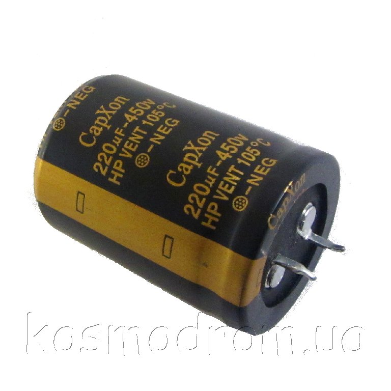 Конденсатор электролитический: 220 мкФ, 450 В. Диаметр 30 мм. Высота 30 мм. Жесткие выводы