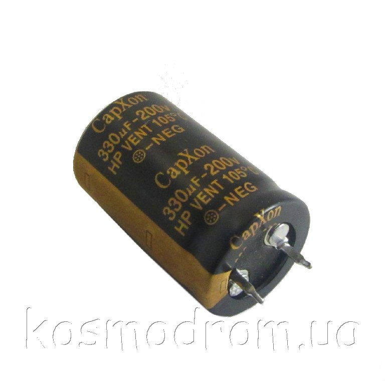 Конденсатор электролитический алюминиевый. 330 мкФ. 200 В. Рабочая температура: -40...+105 С