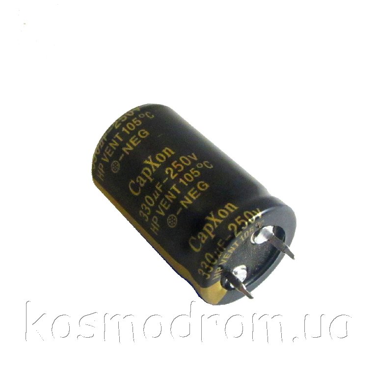 Конденсатор электролитический алюминиевый. 330 мкФ. 250 В. Рабочая температура: -40...+105 С