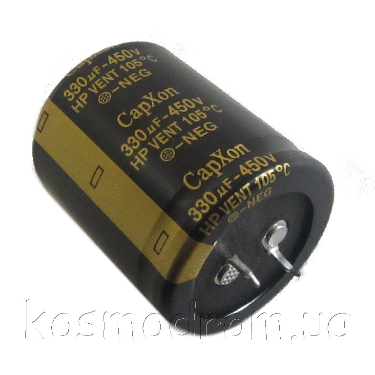 Конденсатор электролитический: 330 мкФ, 450 В. Диаметр 35 мм. Высота 40 мм. Жесткие выводы