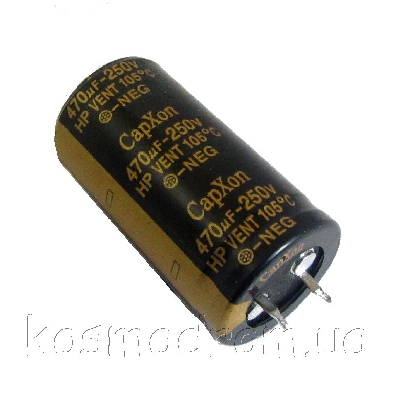 Конденсатор электролитический алюминиевый. 470 мкФ. 250 В. Рабочая температура: -40...+105 С