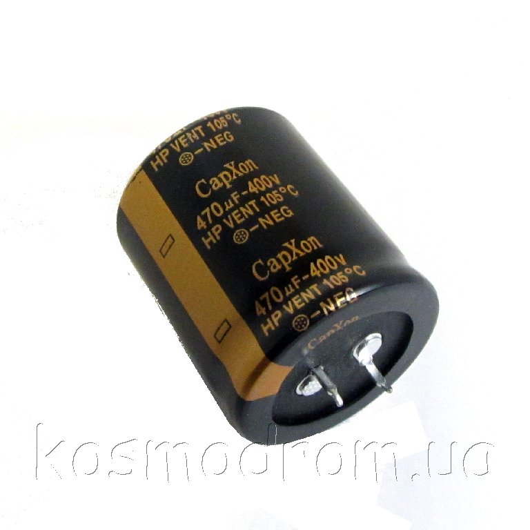 Конденсатор электролитический алюминиевый. 470 мкФ. 400 В. Рабочая температура: -25...+105 С