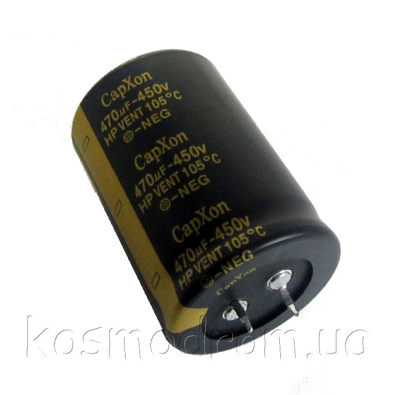 Конденсатор электролитический алюминиевый. 470 мкФ. 450 В. Рабочая температура: -25...+105 С