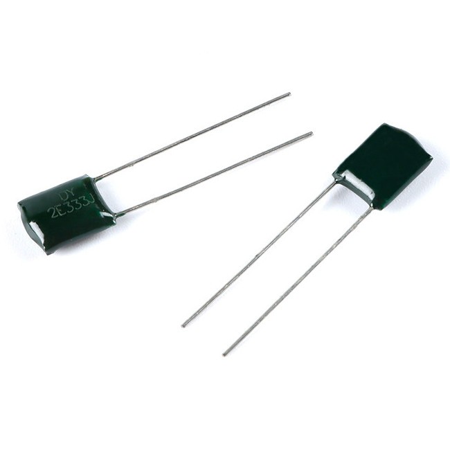 Конденсатор пленочный, полистирольный, индуктивного типа с огнезащитным эпоксидным покрытием корпуса, 0,01 мкФ. 100 В. Точность 5%