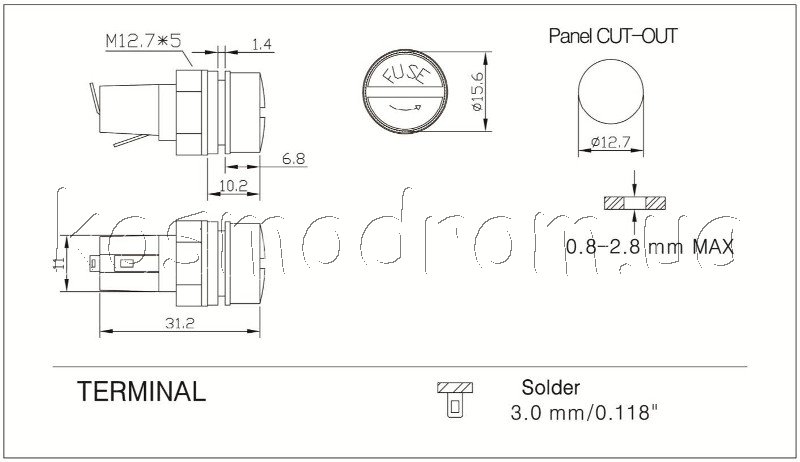 | FH5-728 Держатель предохранителей Встраиваемый держатель для автомобильных предохранителей. 32 В. 20А (макс.)