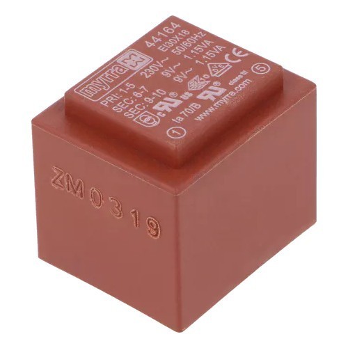 | MYRRA-44128 Трансформатор Трансформатор: залитый, 2ВА, 230ВAC, 9В, 9В, 111мА, 111мА, PCB