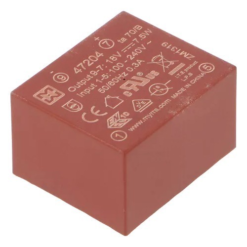 | MYRRA-44678 Трансформатор Трансформатор: залитый, 2,4ВА, 230ВAC, 9В, 267мА, PCB