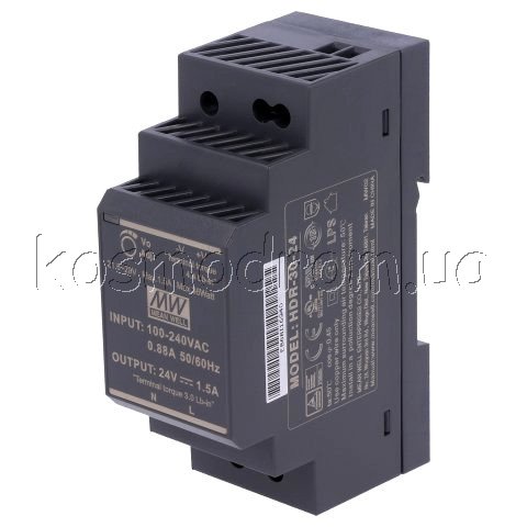 | HDR-30-48 Модульный источник питания на DIN-рейку AC/DC, 36W, Вход: 85-264VAC/120-370VDC, Выход: 48V/0.75А, DIN-rail, размеры 35х90х54.5 мм, -30...+70 С