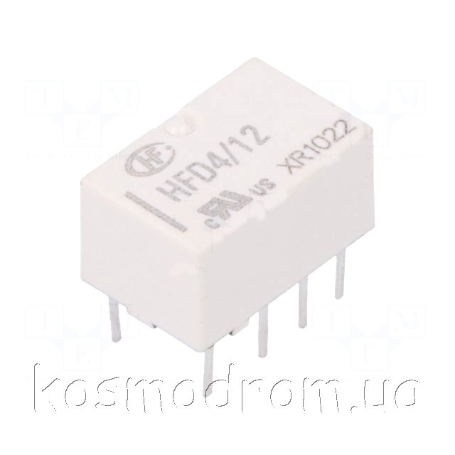 | HFD4/12 Реле электромеханическое Реле: электромагнитное, DPDT(2С), Uобмотки: 12VDC, Комм.0,3A/125VAC, 1А/30VDC, Макс. 2А, Размер: 10x6,5x5,4 мм, Монтаж: DIP