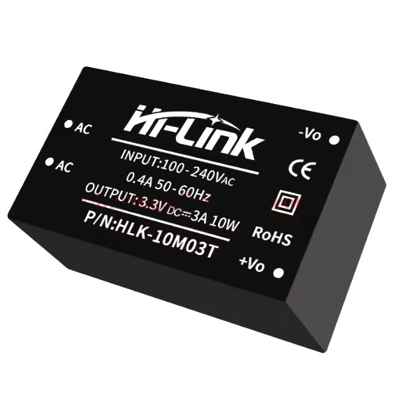 | HLK-10M03T Модульный сетевой источник питания на плату Мощность: 10 Вт. Входное напряжение: 220В. Выходное напряжение: 3.3V. Вых. ток: 3000mA, 39х23.5х18 мм