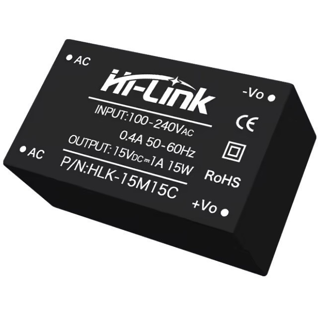 | HLK-15M15C Модульный сетевой источник питания на плату Мощность: 15 Вт. Входное напряжение: 220В. Выходное напряжение: 15V. Вых. ток: 1000mA