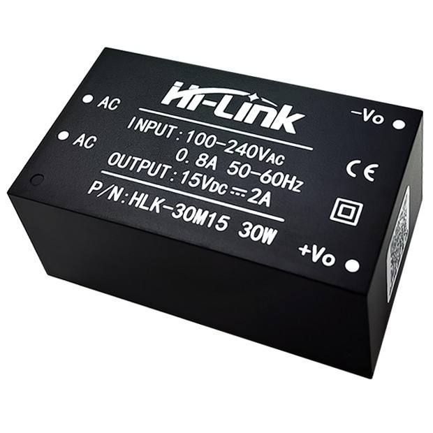 | HLK-30M15 Модульный сетевой источник питания на плату Мощность: 30 Вт. Входное напряжение: 220В. Выходное напряжение: 15V. Вых. ток: 2000mA